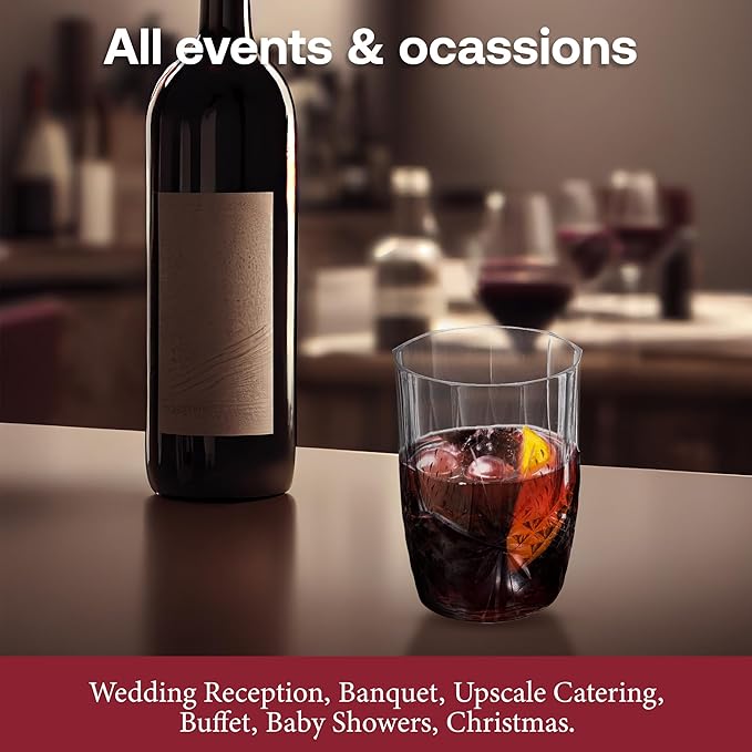 - ELEGANT CRYSTAL CUT PATTERN: These clear plastic cups feature a stylish crystal-cut design, adding a touch of class to any drink. Perfect for use as a cocktail tumbler, adding sophistication to every sip.
