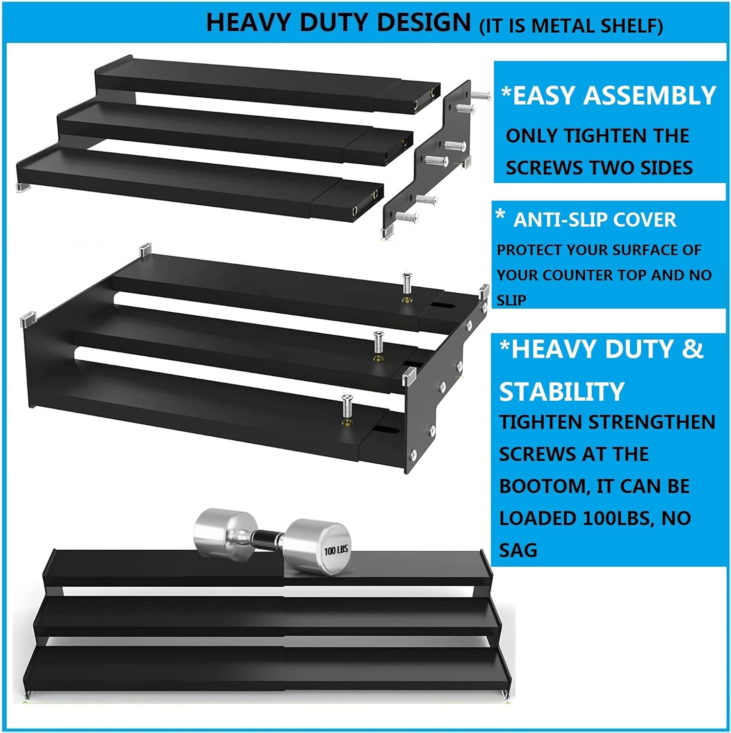 Expandable Spice Rack Storage organizer with 3-Tier step shelf for cabinet,seasoning racks organizion.Great for Kitchen countertop shelves,Pantry and more (1pack/Black)