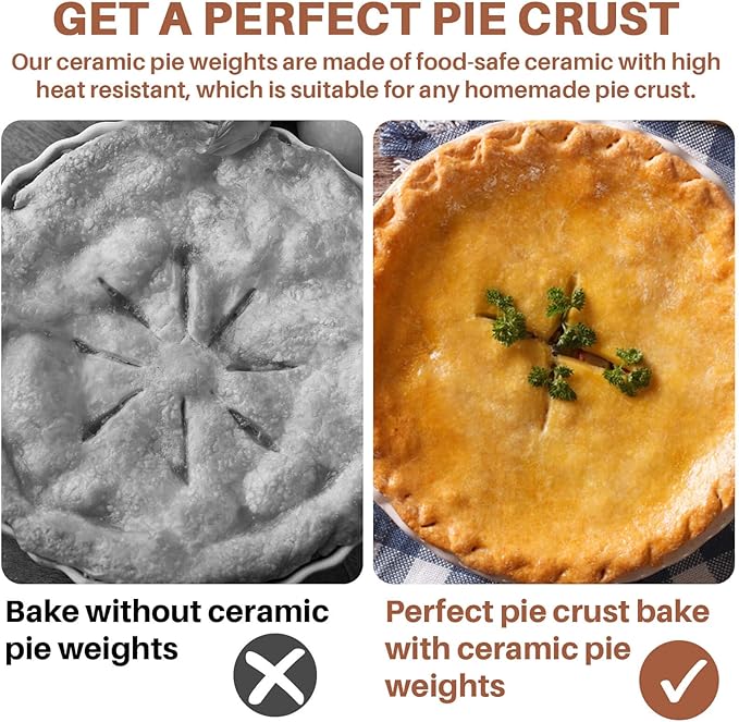 - High Temperature Tolerance: Our pie weights are made of ceramic and can withstand high temperatures, making them ideal for baking pie crusts of all sizes, ensuring that the crusts are flat and crispy