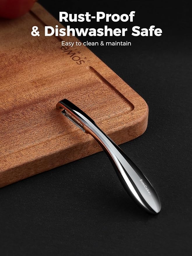 - Stainless Steel Vegetable Peeler: This peeler is crafted from food-grade 304 stainless steel in one piece. It’s rust-proof, easy to clean, and dishwasher-safe for hassle-free maintenance. Enjoy a safer and tidier kitchen experience