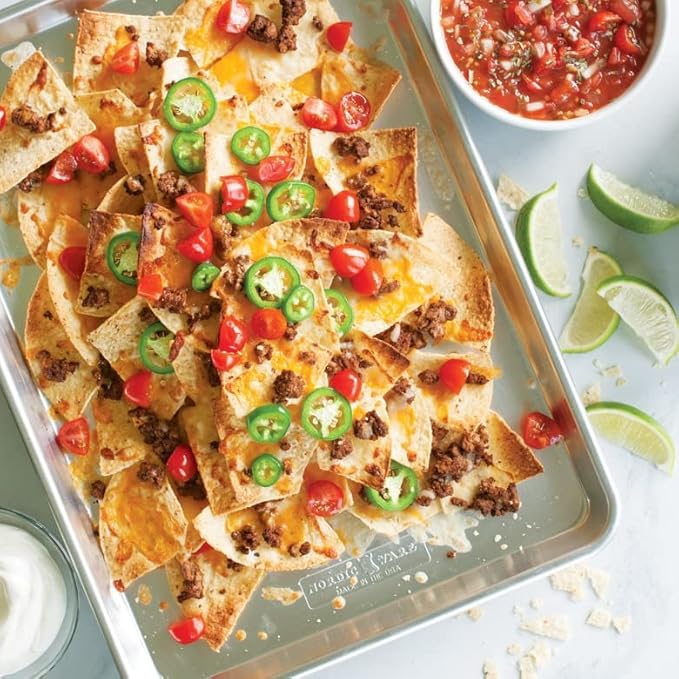 - Two sheet pans come with convenient lid for transporting and storing your baked goods. Lid is made of BPA and Melamine-free polypropylene.