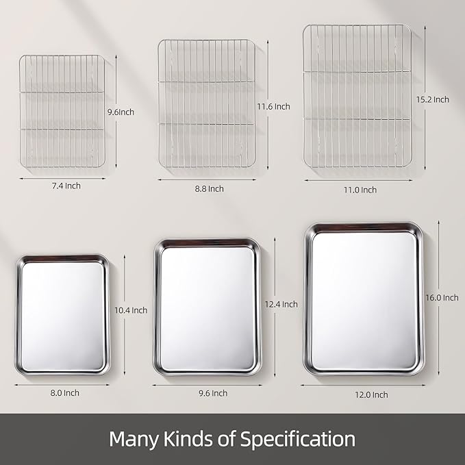 - HEALTHY MATERIAL:Amrules baking pans and racks are made from high quality stainless steel, which is rust and warp resistant and durable. There is no chemical coating and any other toxic materials, safe for your family’s daily use.