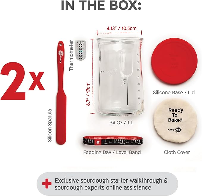 - Essential Addition To Your Bread Making Tools & Supplies - This sourdough jar kit comes complete with volume, net weight & feed line marks, thermometer, cloth cover, silicone cover/base & spatula.