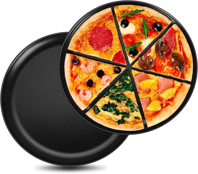 - CRAFTED - Smooth rolled rims with no sharp edges, Provides you with comfortable grasp, Slightly sloped sides for holding more toppings without messing your oven, Premium steel heats evenly with no hot spots producing perfect crispy crust