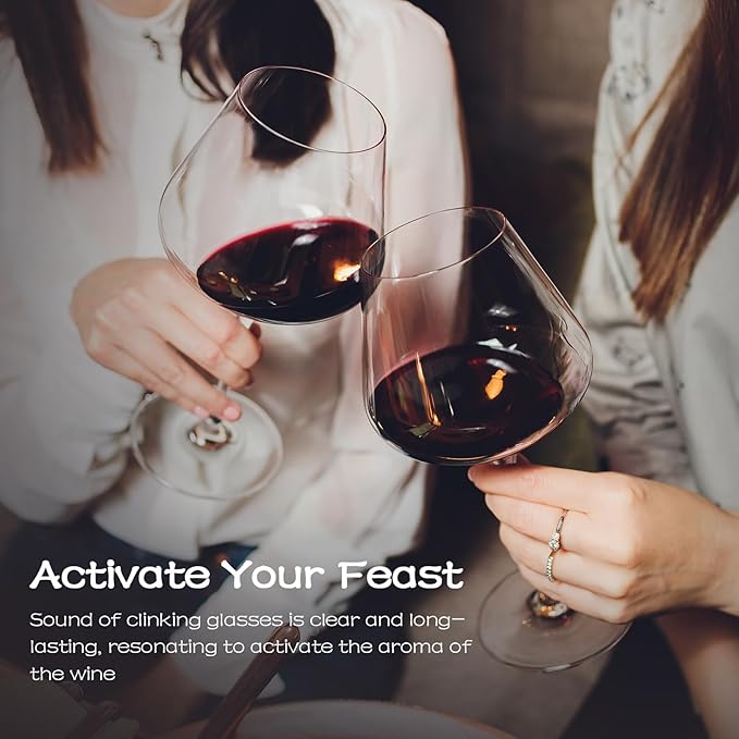 - Super Large & Elegant - One of the largest wine glasses on the market -28oz, with an oversized pool and elegant shape, not only make the glass look so elegant and noble, but also guide the wine flow to the most suitable tasting area. The large belly can better gather the aroma of the wine, allowing you to fully feel the mellow aroma of a good wine with every sip.