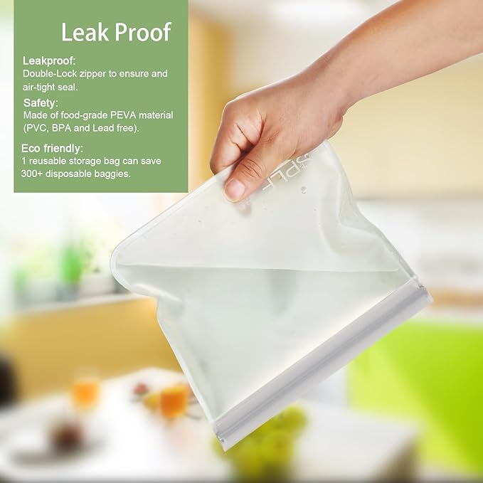 - Food Grade Material: Choose SPLF brand for truly food-grade reusable storage bags. Made of food-grade PEVA material that is PVC, BPA, Chloride and Lead free. Healthy and safe for family and earth.