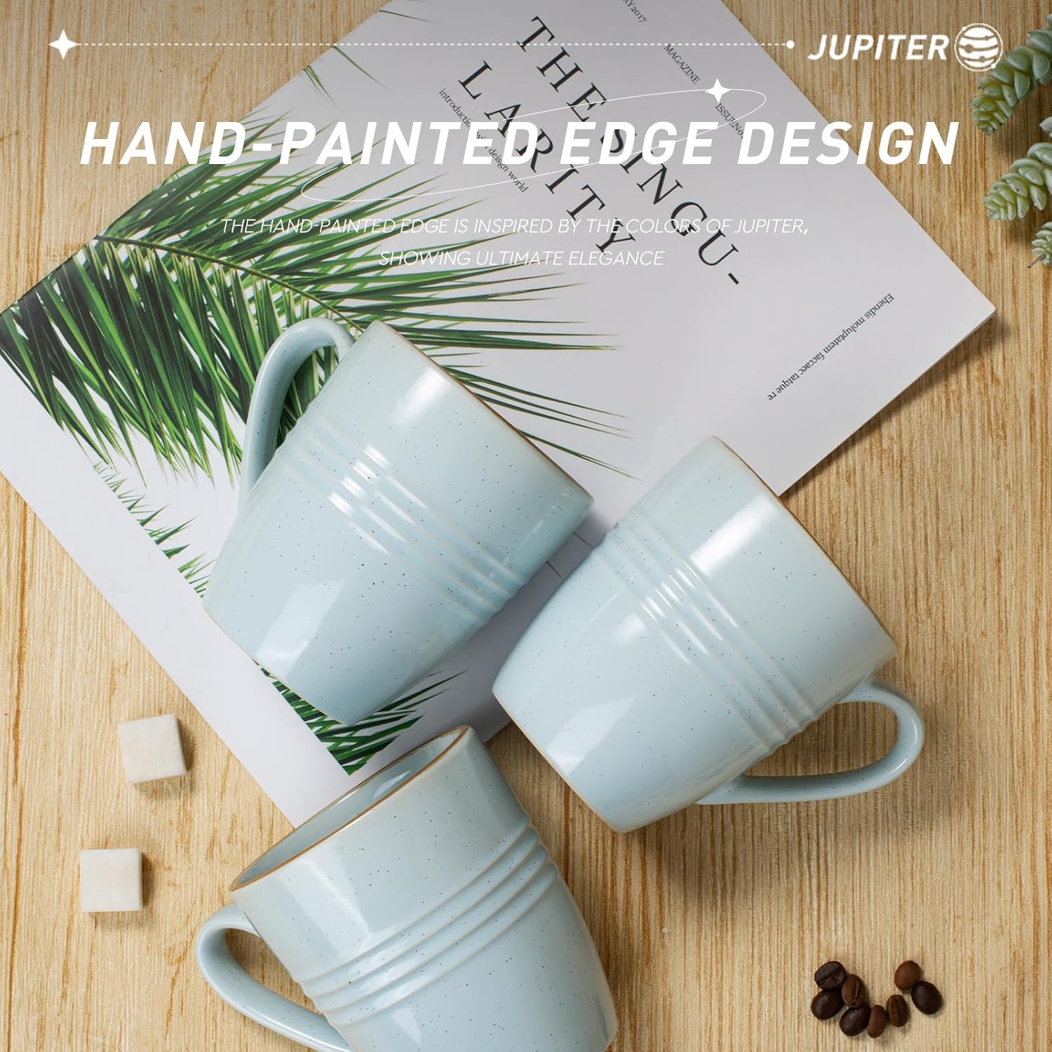 - 【Attractive Design】Our coffee cup was elaborated by artisans. Its speckles and hand-painted edge are great distinctive. The design of ring is inspired by Europa's orbit around Jupiter.