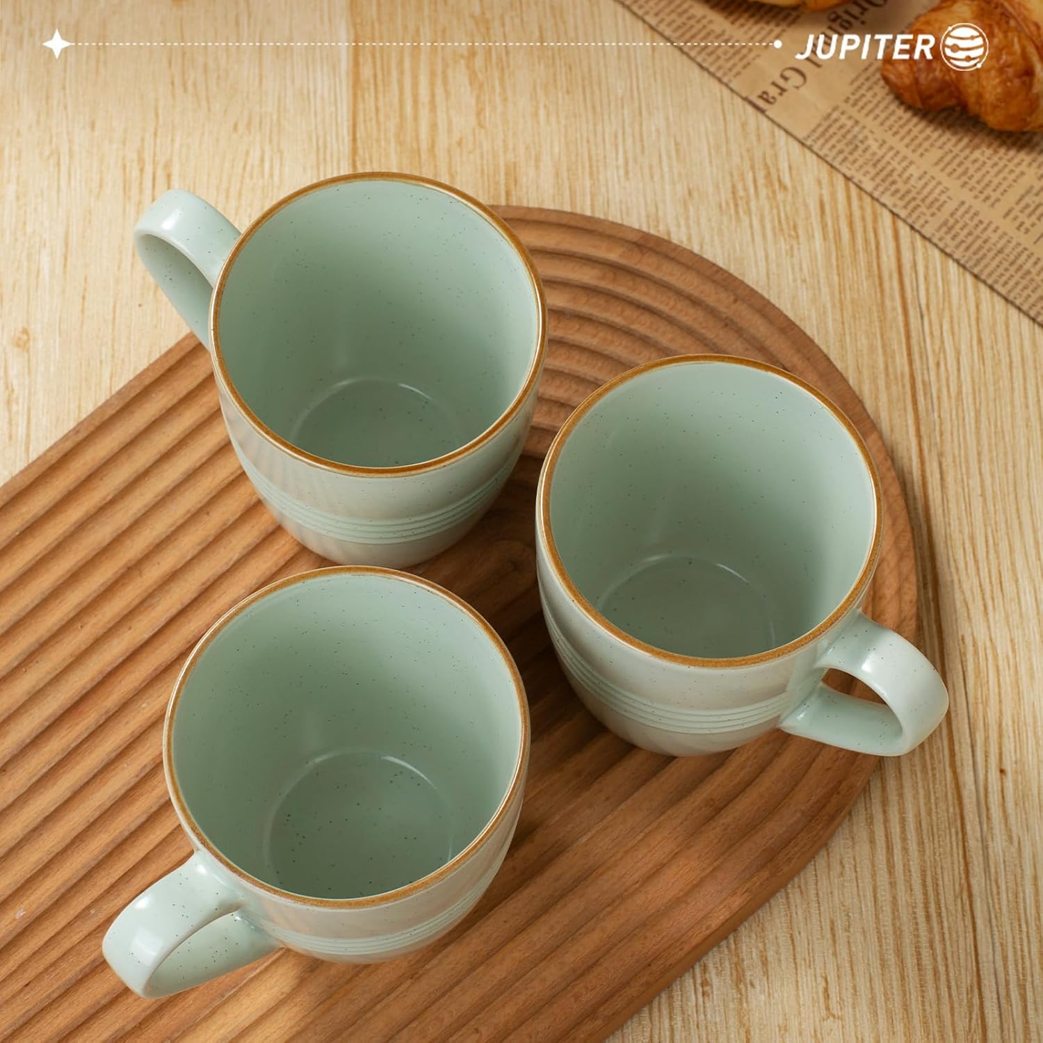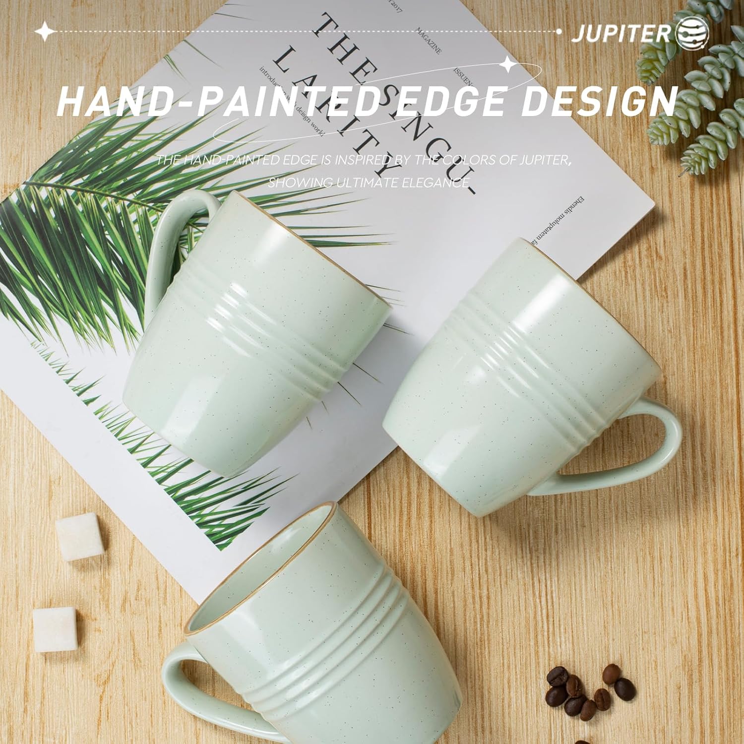 - 【Attractive Design】Our coffee cup was elaborated by artisans. Its speckles and hand-painted edge are great distinctive. The design of ring is inspired by Europa's orbit around Jupiter.