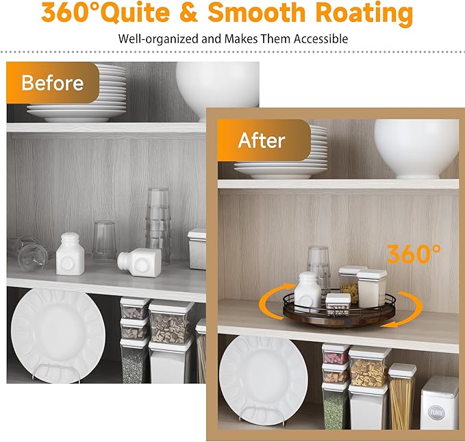 - πππππππππ πππ:This lazy susan is enough to be used nearly anywhere, perfect in the kitchen, cabinets, dining room, office, etc. on your kitchen or dining table for organizing condiments, napkins, decor, candles. Easily reach all your medicine, spices, canned goods in your pantry. Next to your stove, hold all the essentials essences, bowls, greenery, and a butter dish. Good idea for the office desk and craft room to organize. Keep your coffee stuff perfect at your coffee station.