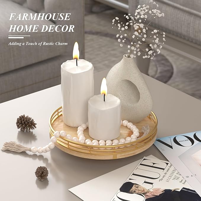 Farmhouse Oak 9" Lazy Susan Turntable Organizer for Cabinet, Round Wooden Lazy Susan Organization and Storage for Dining Table, Pantry, Kitchen, Countertop, Cupboard,Home Decor