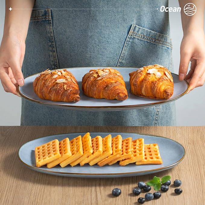 - Sturdy and Enduring: Ocean Series serving platters for entertaining is made of premium stoneware, which is fired by high temperature and mix of all-natural clays. Each piece of the serving plates is sturdy and enduring.