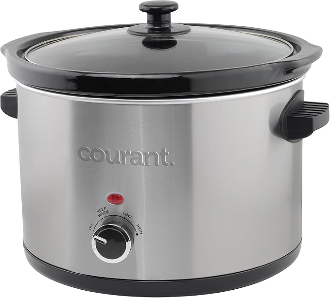 Courant Slow Cooker 5.5 Quart Crock, with Easy Cooking Options, Dishwasher Safe Pot and Glass Lid, Stainless Steel