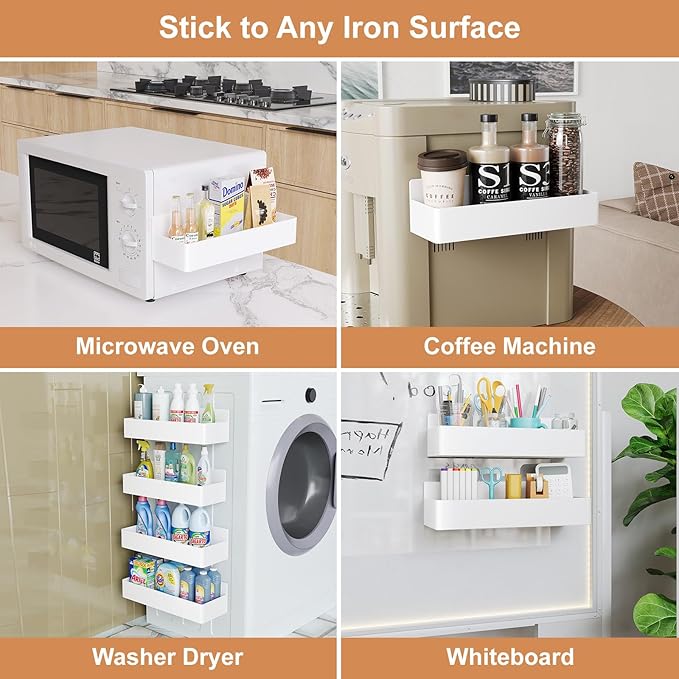 Magnetic Spice Rack for Refrigerator, Kitchen Organizer and Storage Shelf, White (4 Pack)…