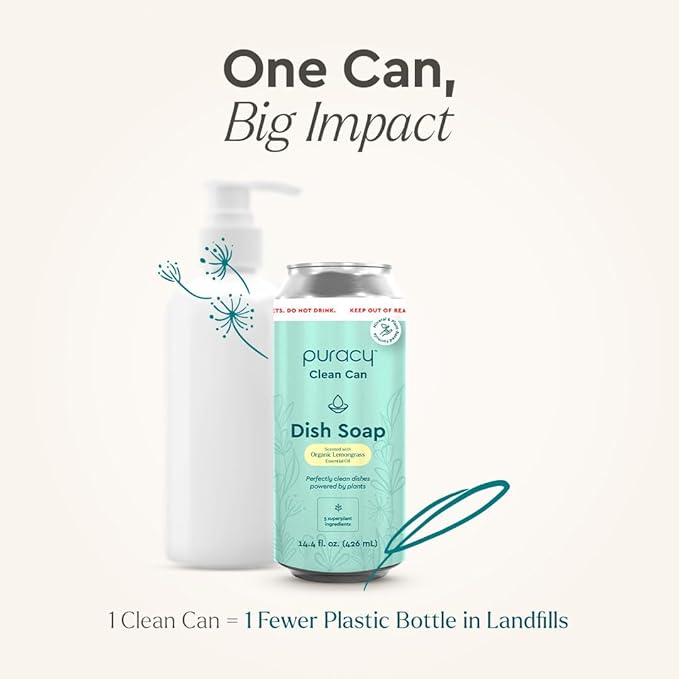 - Infinitely Recyclable - Puracy dish soap concentrate now comes in 3-pack refills for our Clean Can. Our durable bottle is made to last, helping you cut back on single-use plastics. It's a sweet and easy way to keep your home tidy while being kind to the world.