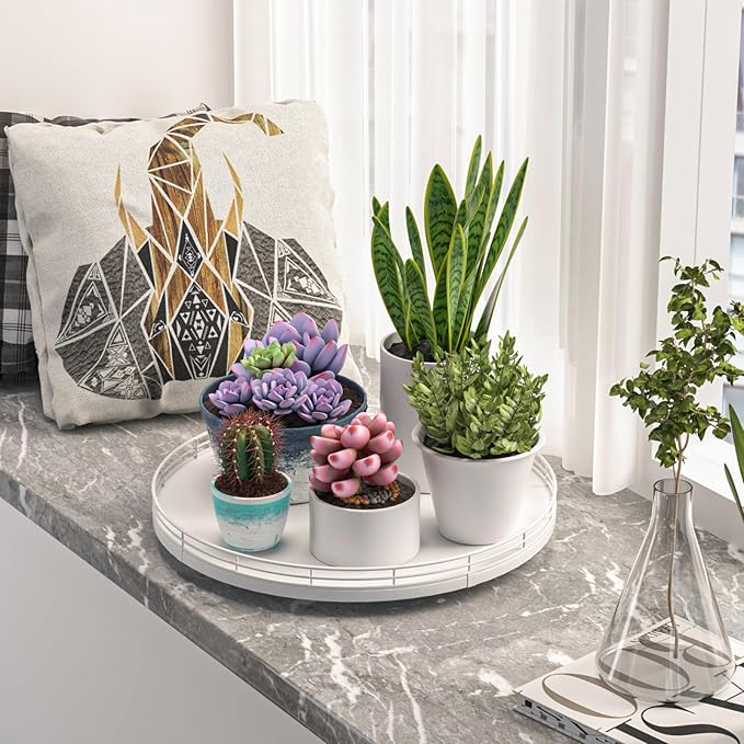 - ๐ ๐๐น๐๐ถ-๐ฃ๐๐ฟ๐ฝ๐ผ๐๐ฒ ๐จ๐๐ฎ๐ด๐ฒ: Perfect for a wide range of occasions and spaces. Whether used as a centerpiece table decorations, a vanity tray in your bathroom, or condiment organizer on your kitchen, this versatile round tray adapts to your needs in any room