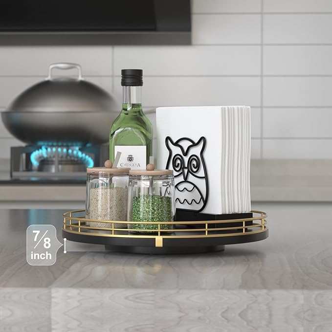 - ๐ง๐ต๐ผ๐๐ด๐ต๐๐ณ๐๐น ๐๐ฒ๐๐ถ๐ด๐ป: The turntable tray features a smooth and silent 360ยฐrotation; Bottom slip-resistant pads for stability and protect your countertop from scratches; Raised edges on each organizer tray to keep items from falling out; Easy to use, no installation required