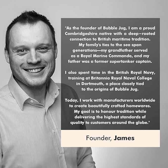 - DESIGNED IN BRITAIN: from our home in the historic city of Cambridge, UK, the Bubble Jug glug jug draws inspiration from a 19th-century British naval design, embodying the essence of authentic British craftsmanship.