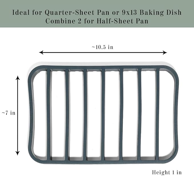 - LARGER SIZE Each rack fits nicely on a quarter sheet baking sheet, combine two racks to cover a half-sheet baking sheet, also fit most glass Pyrex 9 into 13 rectangular bakeware dishes
