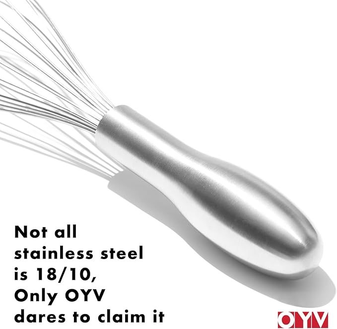 - STRONG, SAFE & RUST-RESISTANT: Made from premium food-grade stainless steel, the OYV 10-inch whisk is rust-resistant and built to last. With 8 sturdy wires that resist bending or breaking, it’s perfect for whipping, beating, or stirring, delivering reliable performance for all your cooking needs