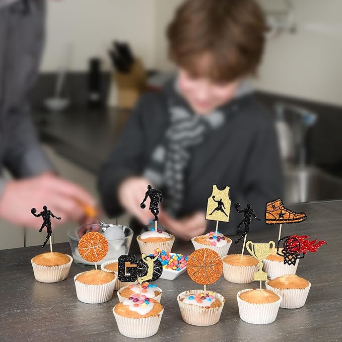 - 【NO Required】: 24Pcs Basketball Cupcake Toppers can put in the cake directly! These 24Pcs Basketball Cupcake Toppers save your time and super easy to use. You can easily dress up your sports theme cakes, yes! but don't stop there, put them into desserts, cookies, fruit pieces, appetizers, muffins and so much more!