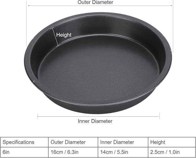 2Pcs Pizza Pan, 6in/9in/10in/12in Deep Dish Round Pizza Pan for Oven, Non Stick Thickened Carbon Steel Baking Pan for Home Kitchen, Dishwasher Safe(6in)