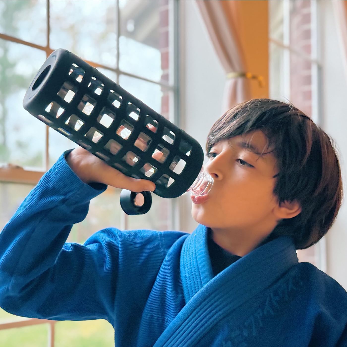 - Safe, Durable & Pure – Glass drinking bottle with silicone sleeve keeps drinks fresh and free from plastic taste. Borosilicate glass and stainless lid provide secure grip and protection.