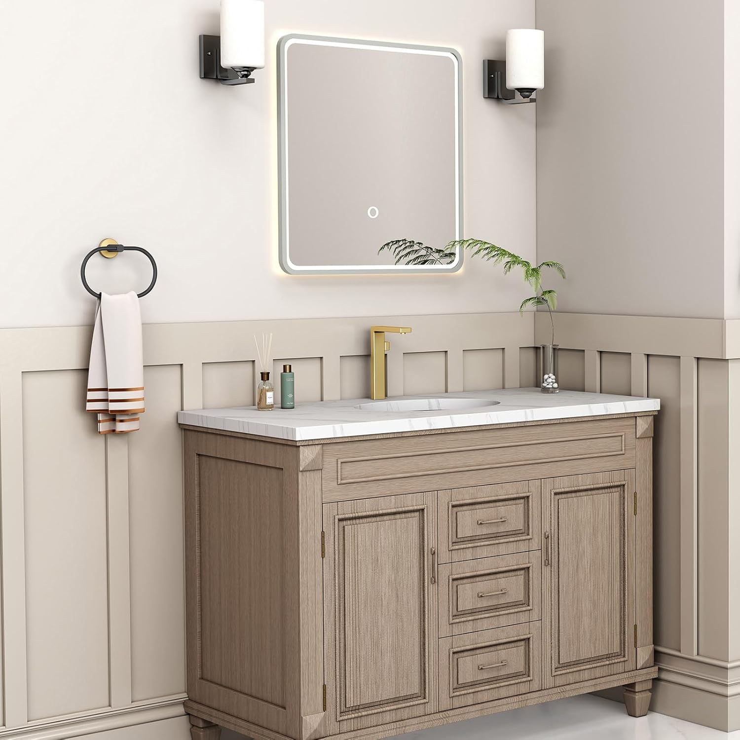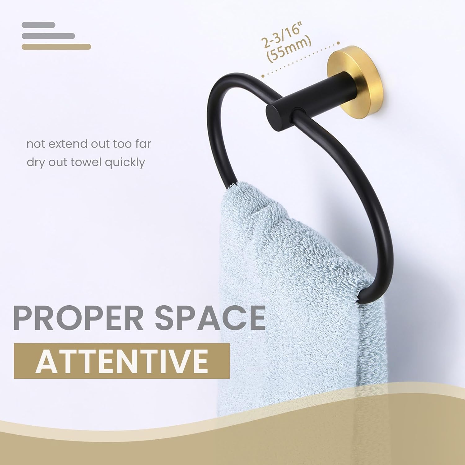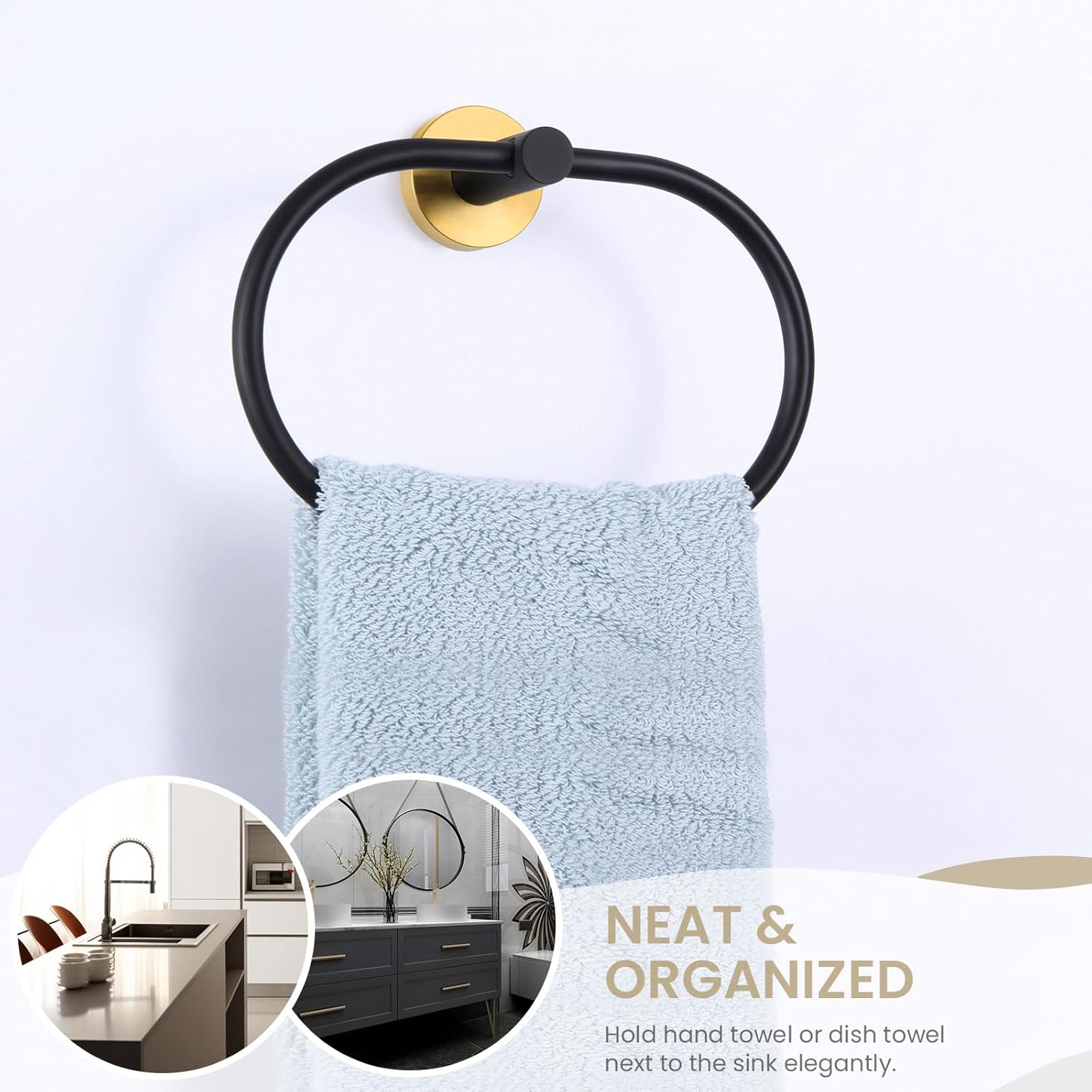 Suyar Towel Ring, Stainless Steel Hand Towel Holder for Bathroom Wall, Oval Shape, Gold and Black