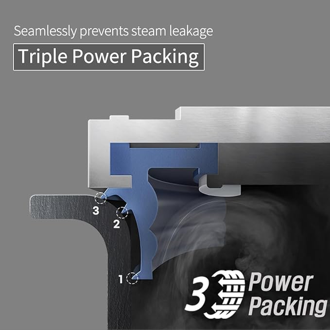 - TRIPLE POWER PACKING: Effectively Seals Any Steam Leakage with a Triple Power Packing