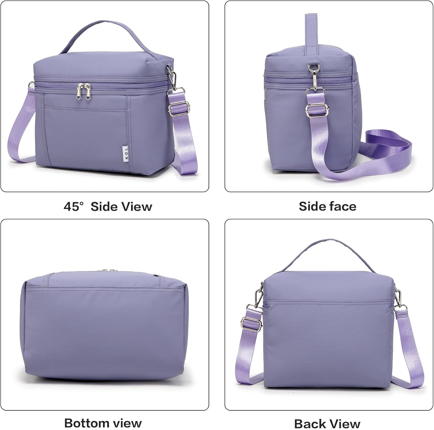 NOL Natural Organic Lifestyle Insulated Lunch Bags for Women Cooler Bag Lightweight Nylon Waterproof Lunch Box For Work (Light purple, Medium(normal))