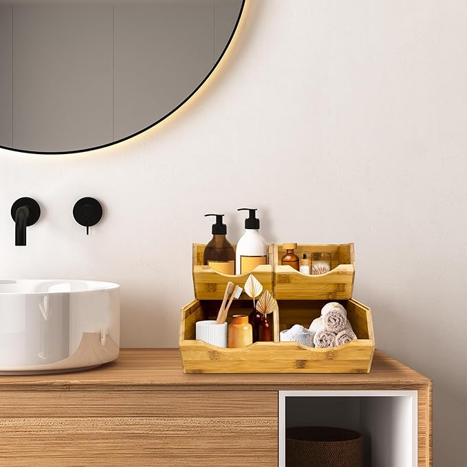 - Versatile Sizing - This bamboo stackable storage bins includes 3 storage bins - 2 small bins for compact spaces and 1 large bin to store bulkier items, easy for stackable and offering flexibility for all your storage need
