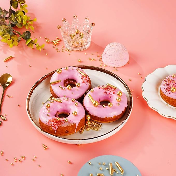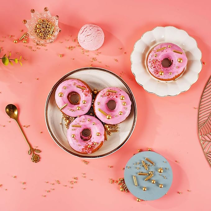 - 【Multi-Purpose】: Gold pearls candy decorations is widely used, it can be used for decoration of various foods, such as cakes, cookies, ice cream, cupcakes, donuts, etc. Sprinkles for cake decorating are suitable for weddings, birthdays, Halloween, Christmas and other theme parties, it can make your baking full of festive atmosphere!
