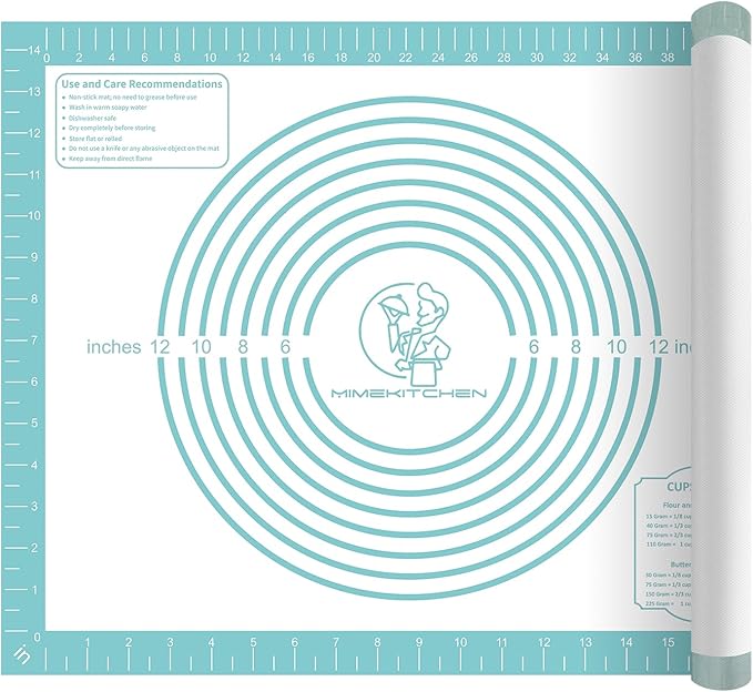 - 【Durable Silicone Baking Mat】: Multi-layers of silicone and fiberglass to reinforce the mat makes our silicone pastry mat more durable than other regular baking pastry mat. It won’t rip or roll up at the edges, and very hard to crinkle or slide around as you roll the dough. Silicone mat to serve you for years and years or even more; a must-have accessory for any kitchen.