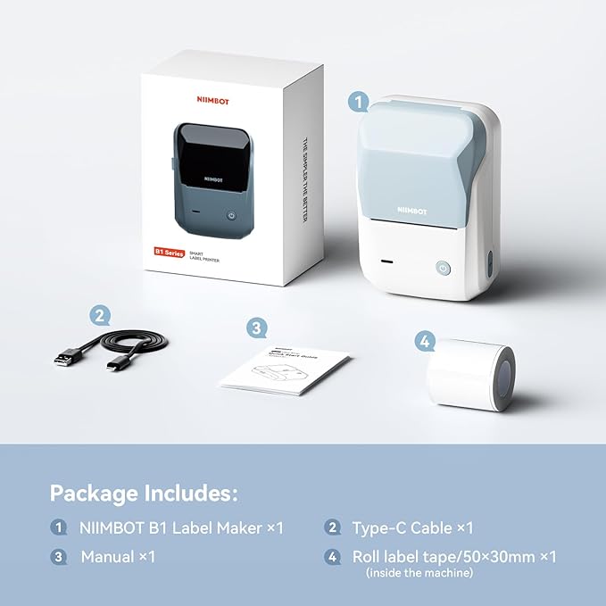 - 【Save Money & Time】With the automatic label identification, NIIMBOT B1 label printer makes your printing more fast and easier. It is thermal printer, no ink printing, no need to use ribbon, reduce consumable demand and save money. To save energy, the label maker will auto-turn off after 15-minute pause, you could also set the auto power-off (15min,30min,60min,never) to meet your needs.