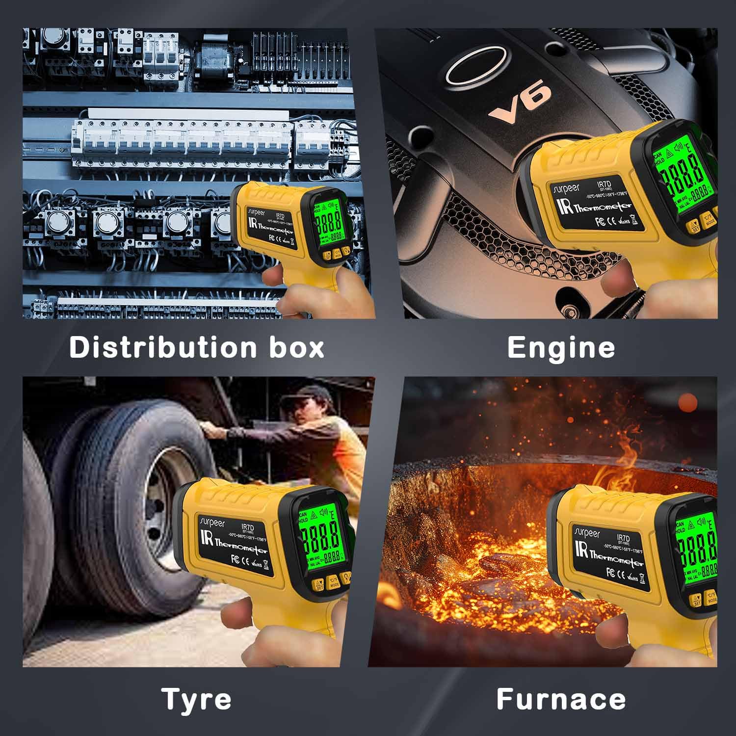 - Measure High Temperatures Safely: infrared thermometer boasts a 50:1 distance-to-spot ratio, making it perfect for various applications, including cooking, pizza ovens, grilling, HVAC, vehicle maintenance, home inspection, and industrial settings like aluminum alloy, ceramic stoves, and metal castings