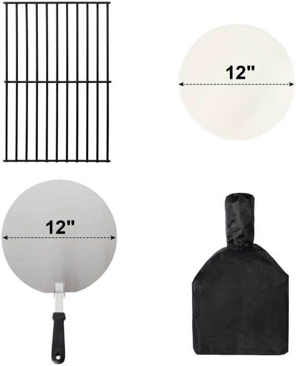 - 【Package Included】The package comes with a Pizza oven , a 12" pizza stone, a baking shovel, ash collect tray and a waterproof cover.
