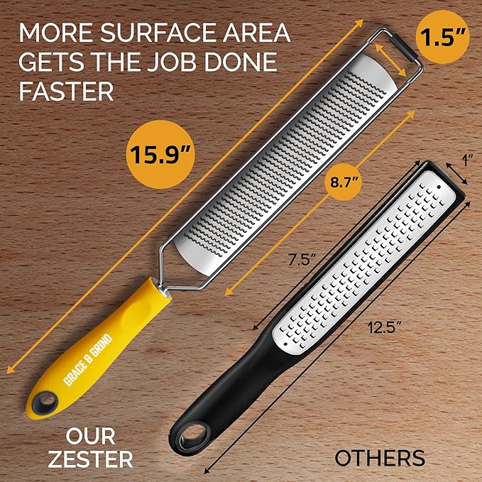 - IT DOES WHAT YOU WANT 👌 - Our zester grater is delicate enough to perfectly zest your lemons yet strong enough to plow through a block of aged parmesan cheese. Trust us - we spent two years fixating on the angle of micro teeth.