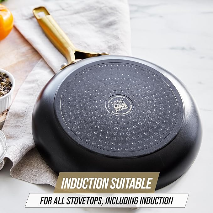 Blue Diamond Gold 10 Piece Cookware Pots and Pans Set, Induction Suitable, Diamond Infused PFAS-Free Ceramic Nonstick, Durable, Metal Utensil Safe, Dishwasher Safe, Gold Handle, Black