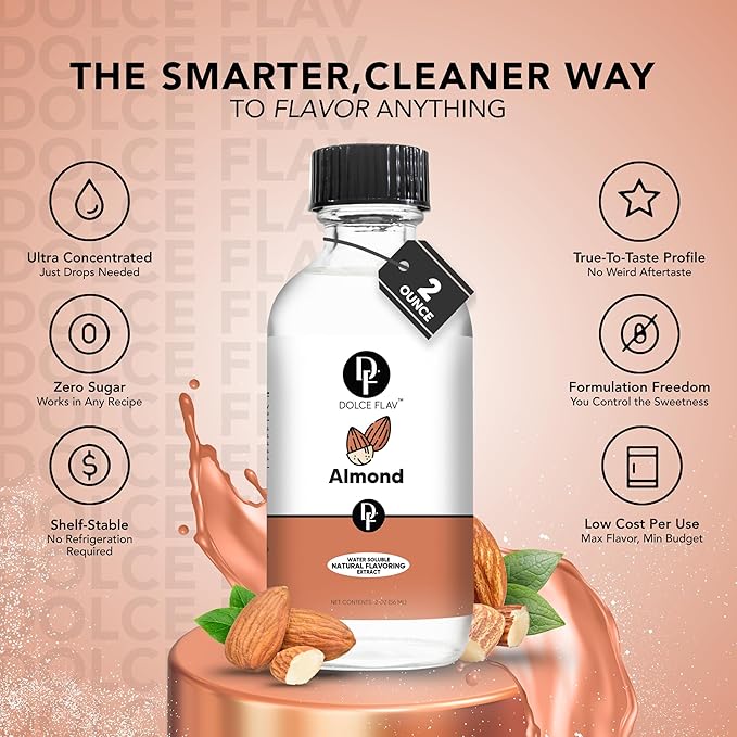 - Innovative Culinary Adventures with Almond: Take your cooking to new heights with our sugar-free almond concentrate. Produced in the USA, it adds a complex almond note to a broad spectrum of recipes, ideal for creative culinary efforts. Use it in savory almond sauces, dressings, or desserts for a rich infusion of almond taste.