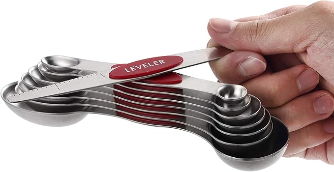 - Patent Pending Magnetic Design For Easy Use And Storage - These magnetic cups and spoons let you use one spoon or cup at a time and then they nest together for easy storage. Quickly grab the spoon or cup you need without having to fumble with opening and closing a ring. They even have U.S. and metric measurement markings that are easy to read and won't fade or rub off.