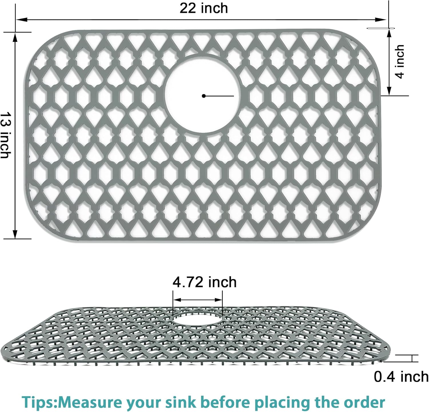 Sink Protectors for Kitchen Sink 19x14 & 21x16 & 22x13 & 26x14 & 28x14.4 & 30x16, Large Silicone Sink Mats Grid for Bottom of Farmhouse Stainless Steel Sink (22”x13”, Rear Drain)