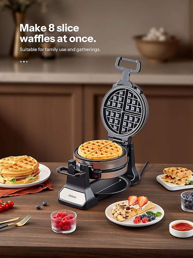 - Rotating Design for Perfect Waffles - The rotating feature ensures that your waffles cook evenly on both sides, resulting in consistent and golden perfection.
