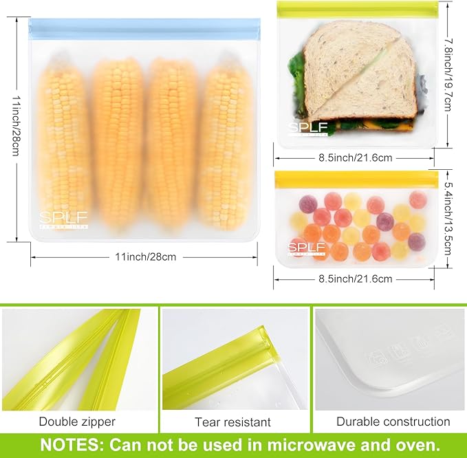 - Food Grade Material: Choose SPLF brand for Truly food-grade reusable storage bags. Made of food-grade PEVA material that is PVC, BPA, Chloride and Lead free. Healthy and safe for family and earth.