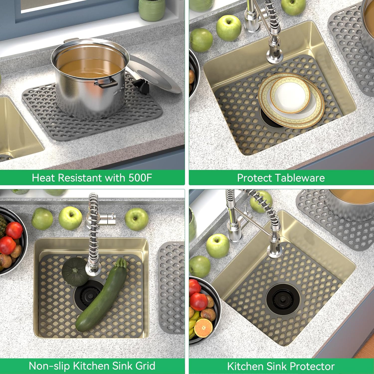 - Versatile Sink Mat: TOOVEM Silicone sink mats are bendable and foldable with good flexibility and will not deform or rust, sink protection mat won't scratch and damage the kitchen countertop or sink but also can protect glass, ceramic bowls and wine glasses from accidental breakage, providing safety for your kitchen utensils