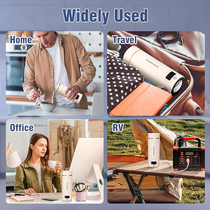 - 4 Smart Temperature Presets: Portable electric kettle has 4 preset temperatures (212-176-131-113°F), through the LCD screen of the cup body to display the temperature easily switched. Travel water boiler can brew coffee, different kinds of tea, milk , ect. Small kettle is not only a electric kettle, but also a water cup, can greatly improve the happiness of life.