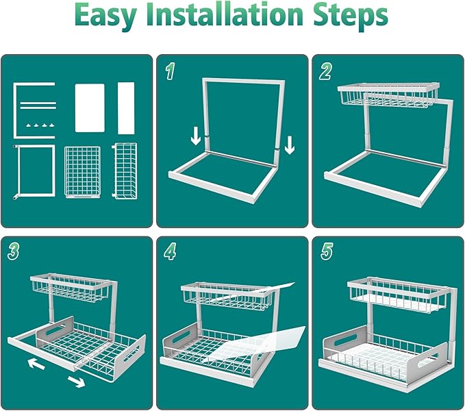 - [Space Saving] Organize the space under your cabinets with this 2-tier under sink storage. This under the sink organizer can solve your under cabinet storage troubles and increase the utilization of limited sink space. With pull out cabinet organizer, you have room for all your stuff, and a slide-out system like this makes it easier to access everything you store under the sink