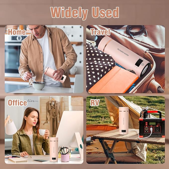 - 4 Smart Temperature Presets: Portable electric kettle has 4 preset temperatures (212-176-131-113°F), through the LCD screen of the cup body to display the temperature easily switched. Travel water boiler can brew coffee, different kinds of tea, milk , ect. Small kettle is not only a electric kettle, but also a water cup, can greatly improve the happiness of life.