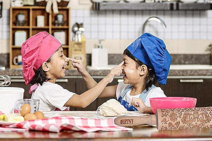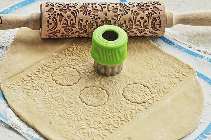 - Kitchen Essential Tool:The embossed rolling pin saves time for decorating and designing biscuits, and baking with an embossed rolling pin can be fun, especially for children. You can let your children make their own biscuits, suitable for rolling pasta, cookie dough, pastries, bakery, pizza, fudge, pancakes, etc