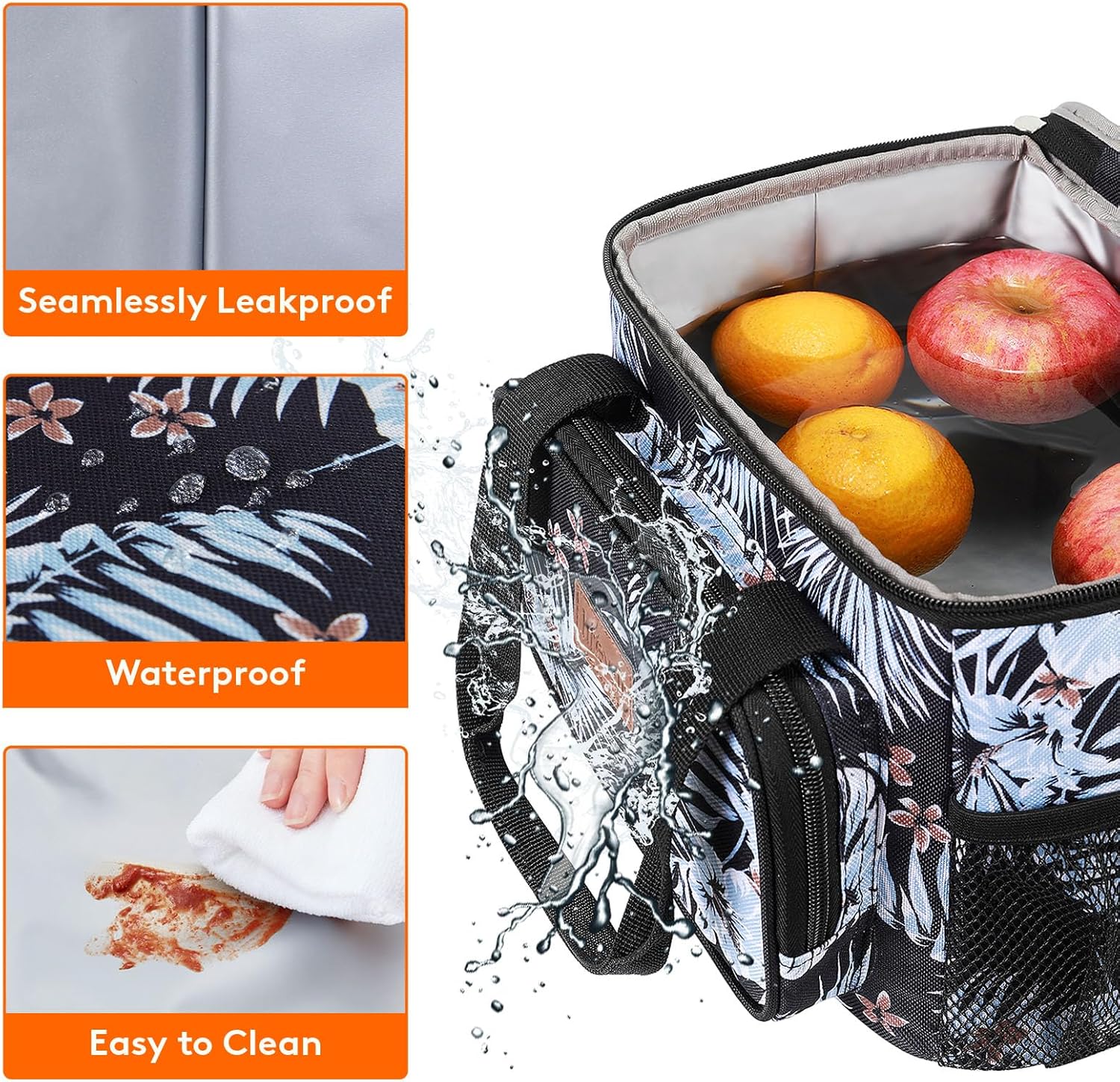 - Leakproof & Waterproof: The exterior of lunch box for men is constructed out of 600D water-resistant dirt-proof Oxford fabric for durability and water proofing and easy cleaning. Even when full with water and ice, it holds fruits and drinks well, will not leak at all.