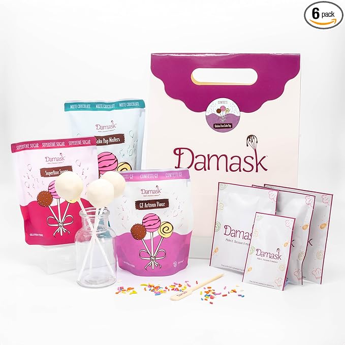 - KIT INCLUDES: Gluten Free Artisan flour, superfine sugar, madagascar vanilla extract, whole milk powder, organic oil, gourmet chocolate candy coating, small-batch, naturally-colored rainbow sprinkles, 20 cake pop sticks, 20 cellophane wraps & ties, 1 parchment round, 1 skewer (to test doneness)