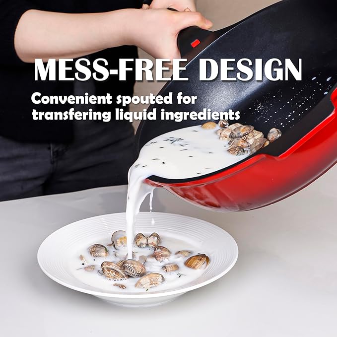 - 【RUBY RED APPEARANCE】- Equipped with built-to-last coating, the saute pan can withstand up to 260 ℃/ 500°F without peeling or fading. The gorgeous ruby red shades make the nonstick cooking pan really stand out as a perfect surprise for Christmas and other special days.